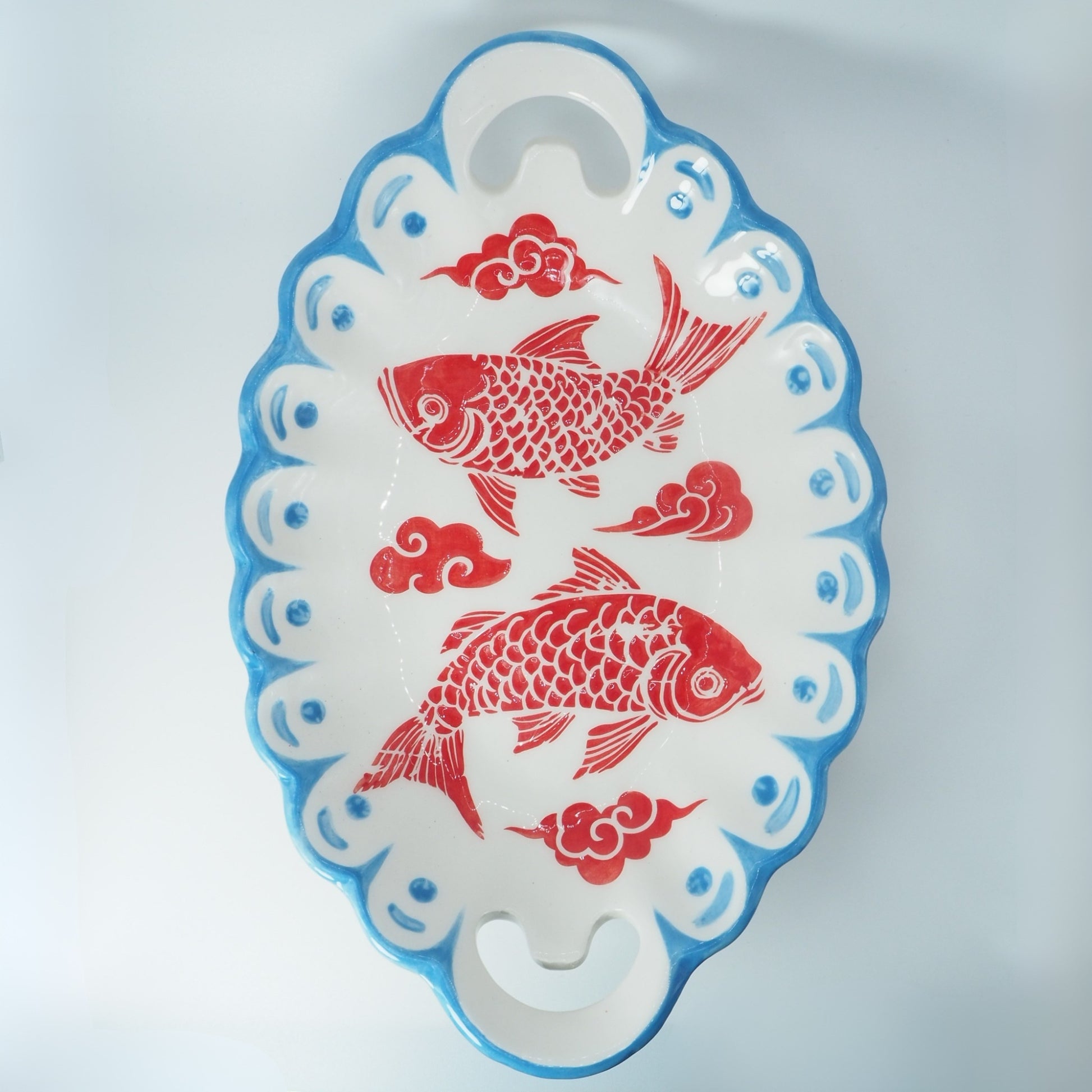 Bandeja Koi Japonesa — Cerámica pintada a mano